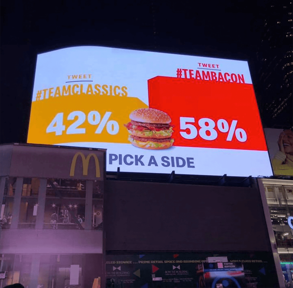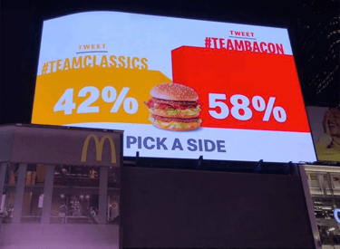 McDonald’s has a proven track record of making a strong impact and capturing public attention. In their latest initiative, they sought to amplify the visibility of their Bacon campaign by engaging viewers in a unique way: they wanted to invite voters to weigh in on whether their burgers would be enhanced by the addition of bacon.