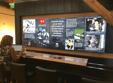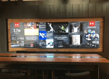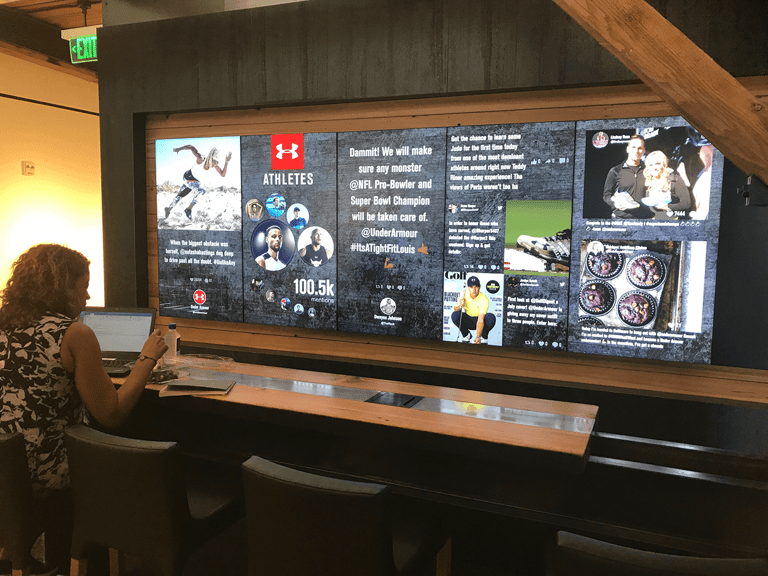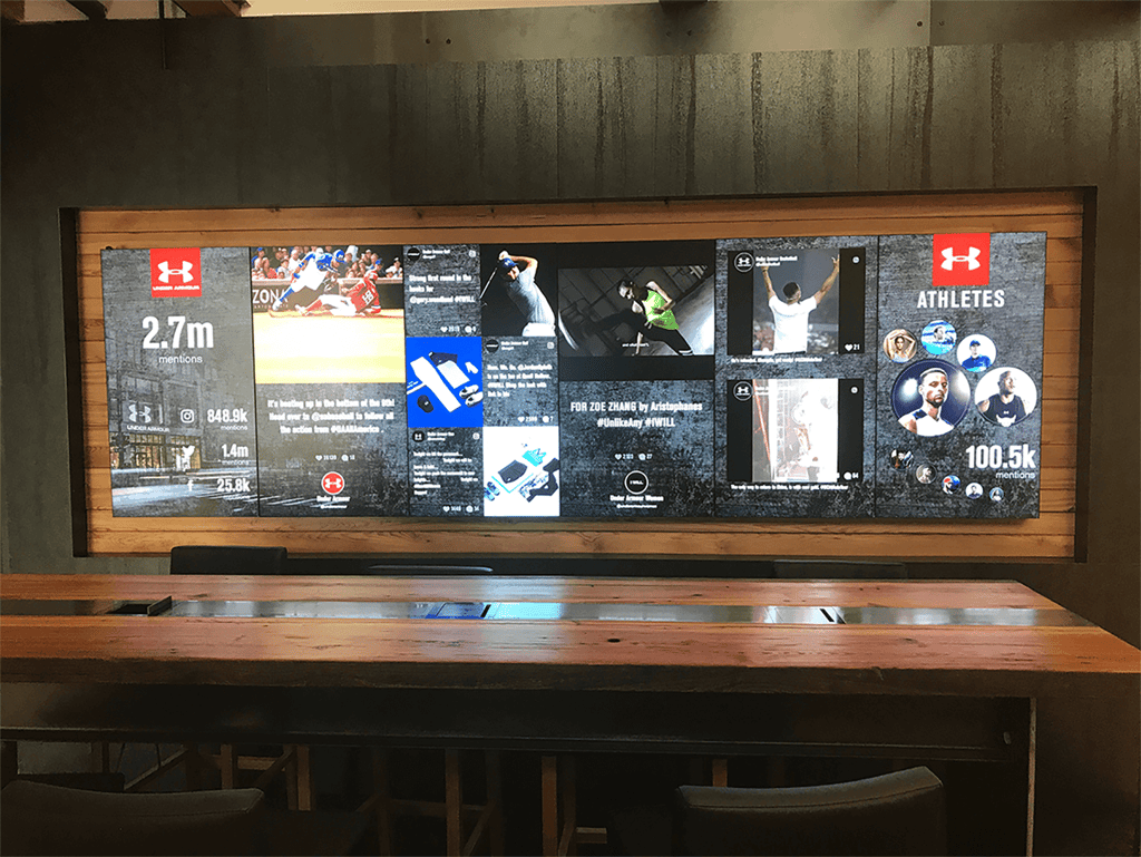 Our objective was to design a Display system strategically positioned to comprehensively showcase Under Armour's sports highlights and sponsored athlete social engagement. This transformation aimed to make the space not only an impressive Brand Ambassador during client visits but also a dynamic internal hub for fostering discussions and engagement around UA's social presence among employees.